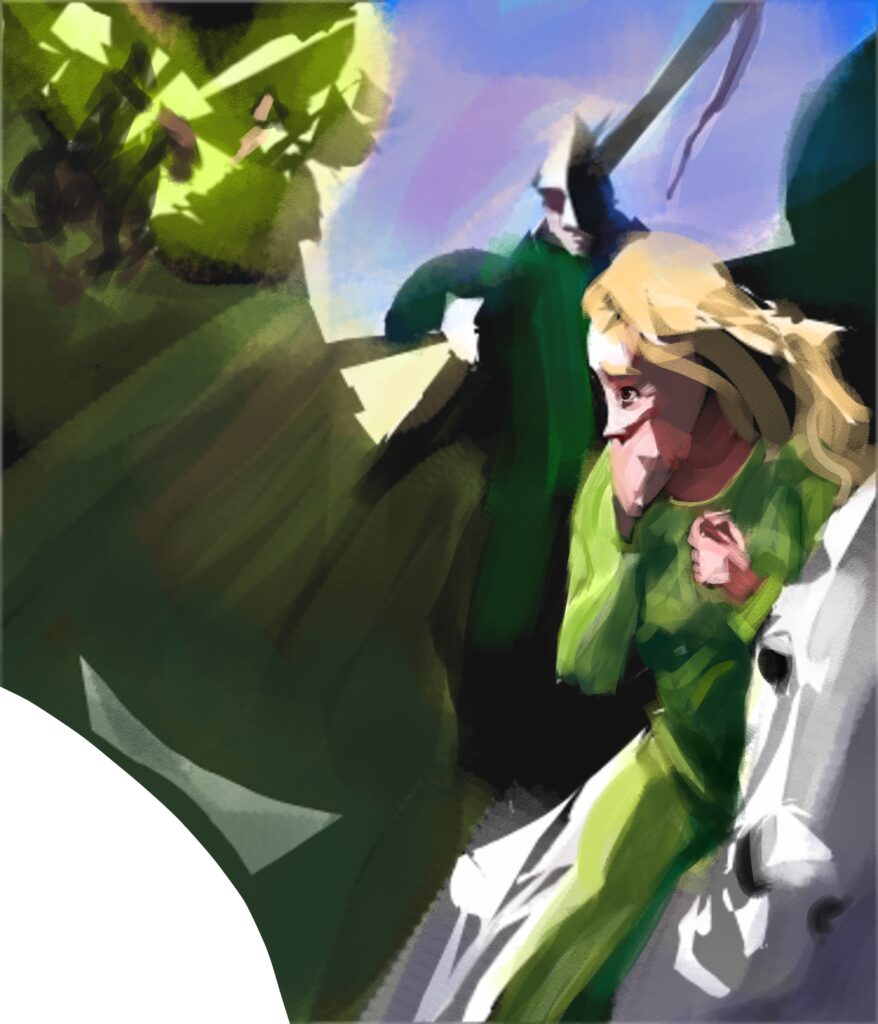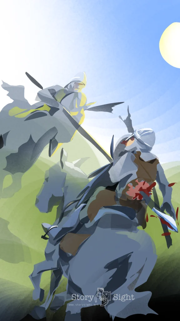 “I only wished to tell you,” she said in as timid and inoffensive a voice as she might manage, “that there are five knights coming up behind you. True, only one of them is… actively charging at your back, but… nonetheless, the other four will quickly aid him if the need arises. I thought you ought to know.”